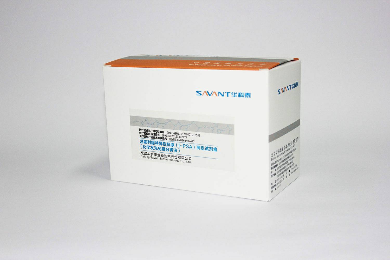 总前列腺特异性抗原(t-PSA)是一种分子量为32KD单链糖蛋白,由前列腺上皮细胞分泌产生,它是一种类似糜蛋白酶的丝氨酸蛋白酶。正常情况下PSA泌入精液,在精囊包的分裂和精液的液化上发挥生理作用。