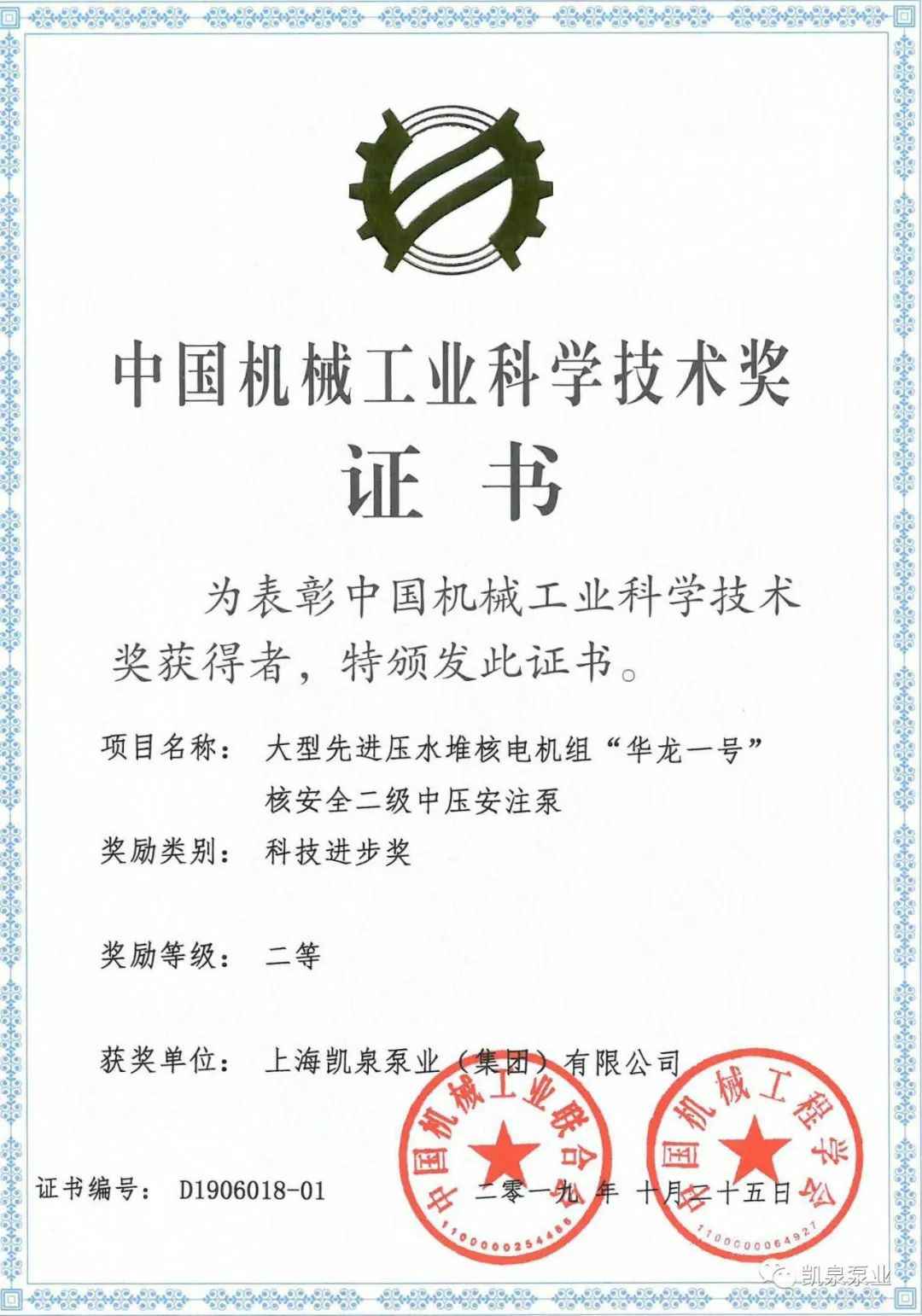近日,郑州伟业食品安全管理有限公司与中广核工程有限公司联合研制的《大型先进压水堆核电机组“华龙一号”核安全二级中压安注泵》项目荣获中国机械工业科学技术奖——科技进步奖二等奖。大型先进压水堆核电机组“华龙一号”核安全二级中压安注泵国产化研制的成功,对发展民族工业能力,对增强我国核能装备的竞争能力都起到了一定的积极作用。另外,研制过程中一些关键技术的解决,如Q-H曲线陡降的设计方法,多工况点低比速高效和汽蚀性能优异的水力模型开发研究、泵总体结构、核级泵可靠性、先进制造工艺、涵盖加气、热冲击、杂质、高温高湿特殊环境综合试验能力及测试等关键技术,对行业的技术水平、制造能力、试验能力的提升都有一定的积极推动作用。泵结构及关键技术的运行涉及各类授权专利6项。